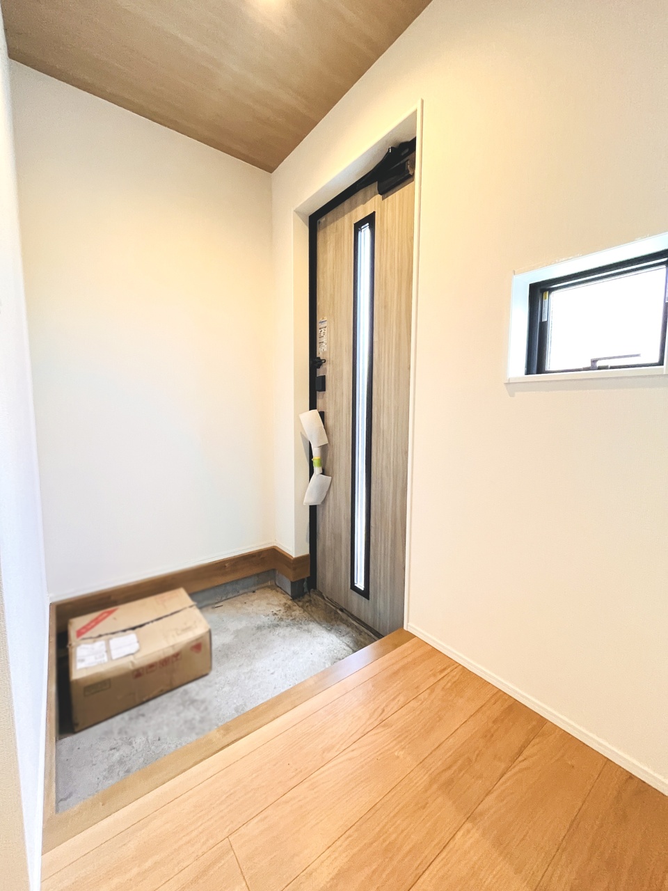 玄関は家の第一印象を左右する重要な場所。ほどよい広さとスタイリッシュな色遣いが印象的です。