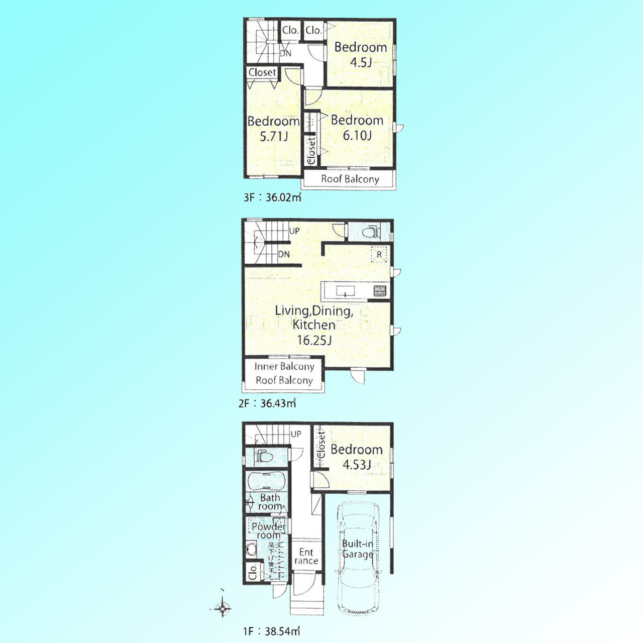 | 土地面積 | 56.95m² ~ 62.01m² 公簿 | ||