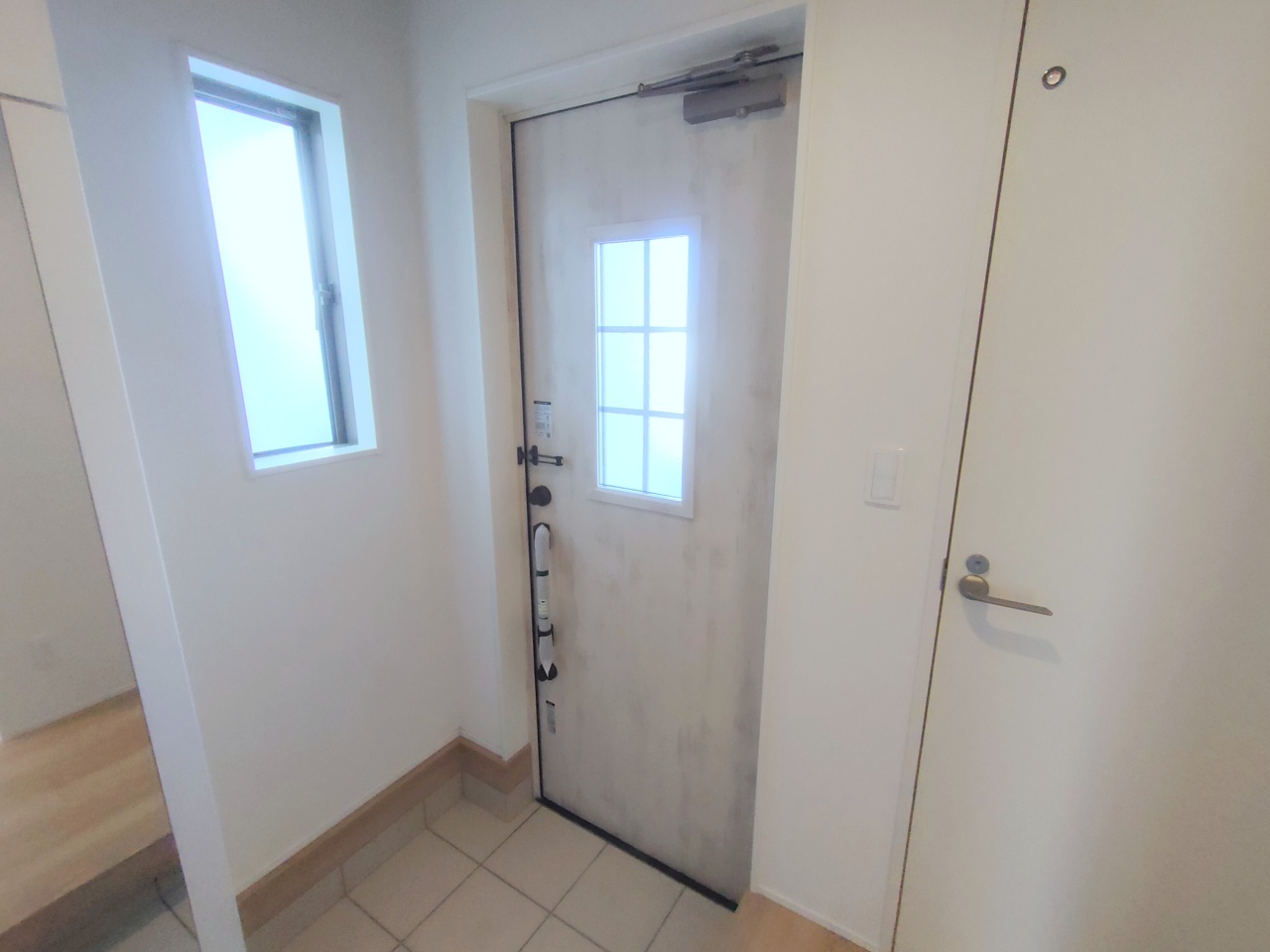 玄関横にシューズインクローク付き、雨具や三輪車を置いても余裕の広さ。