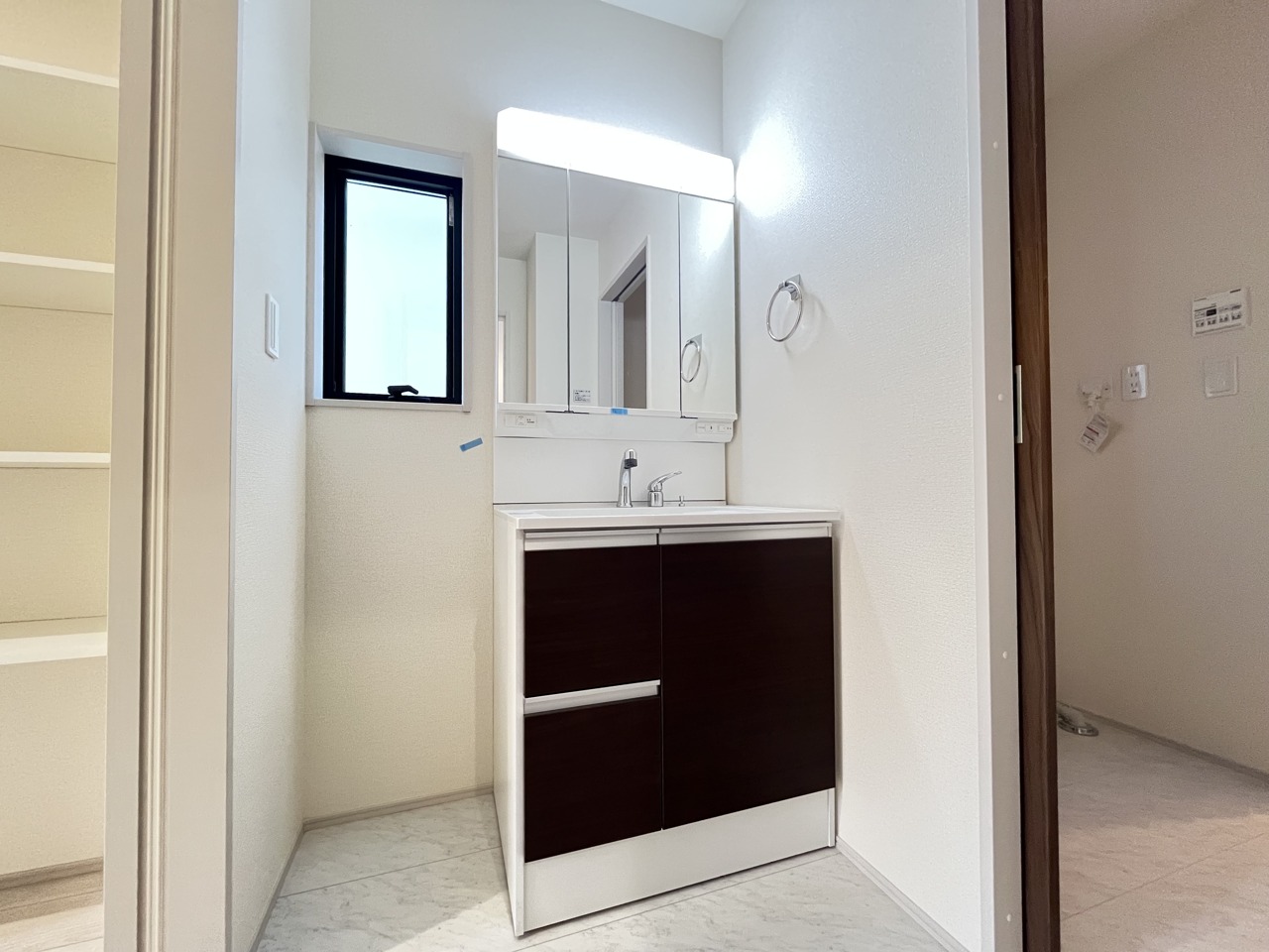 使い勝手の良い洗面台、窓があることで換気もしやすく清潔感のある空間を保てます。