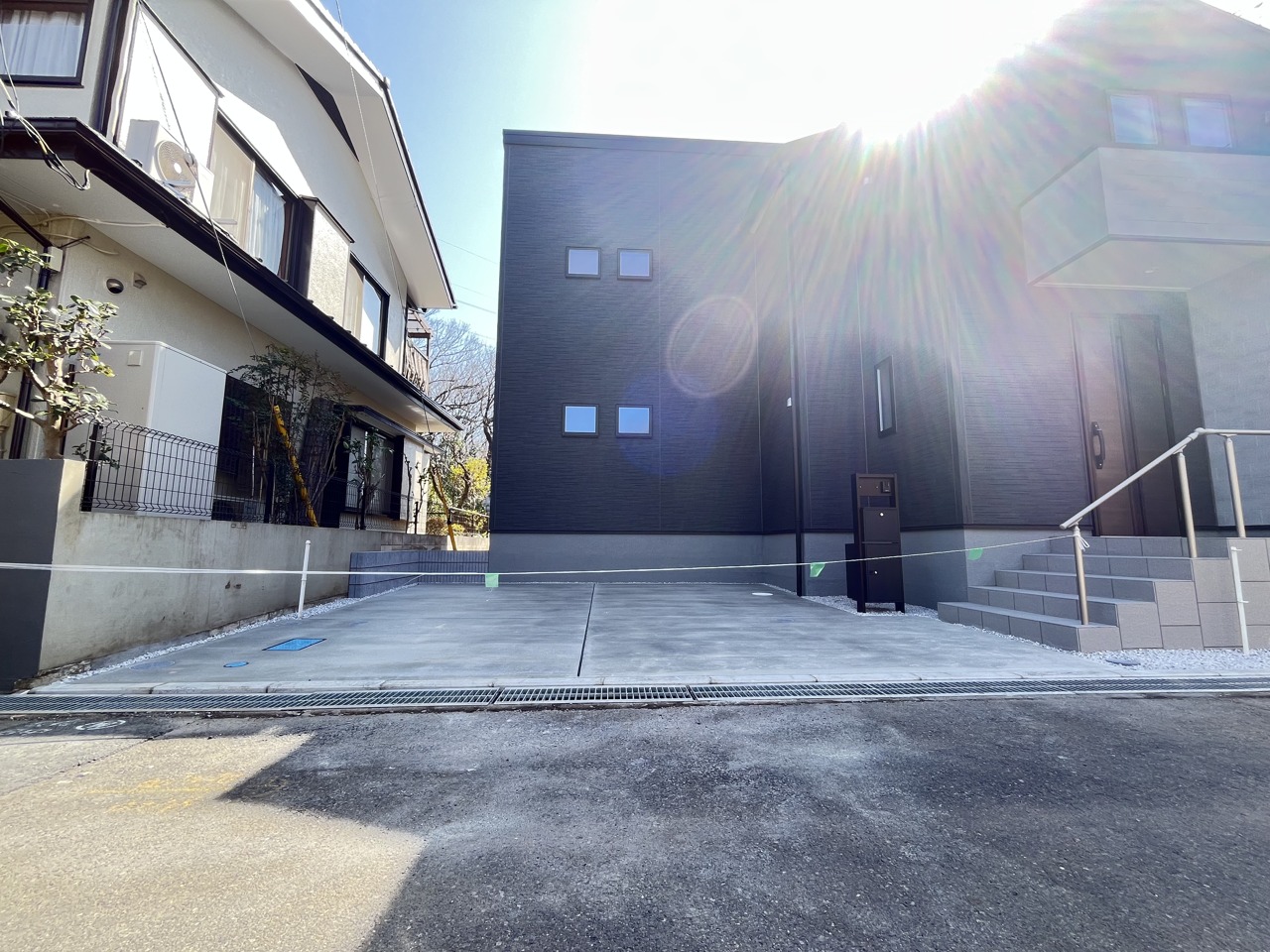 - カースペース並列2台可能です(車種による)、土地約45坪の整形地です、2階廊下から出入りできるバルコニー、お気軽にお問い合わせ下さい、