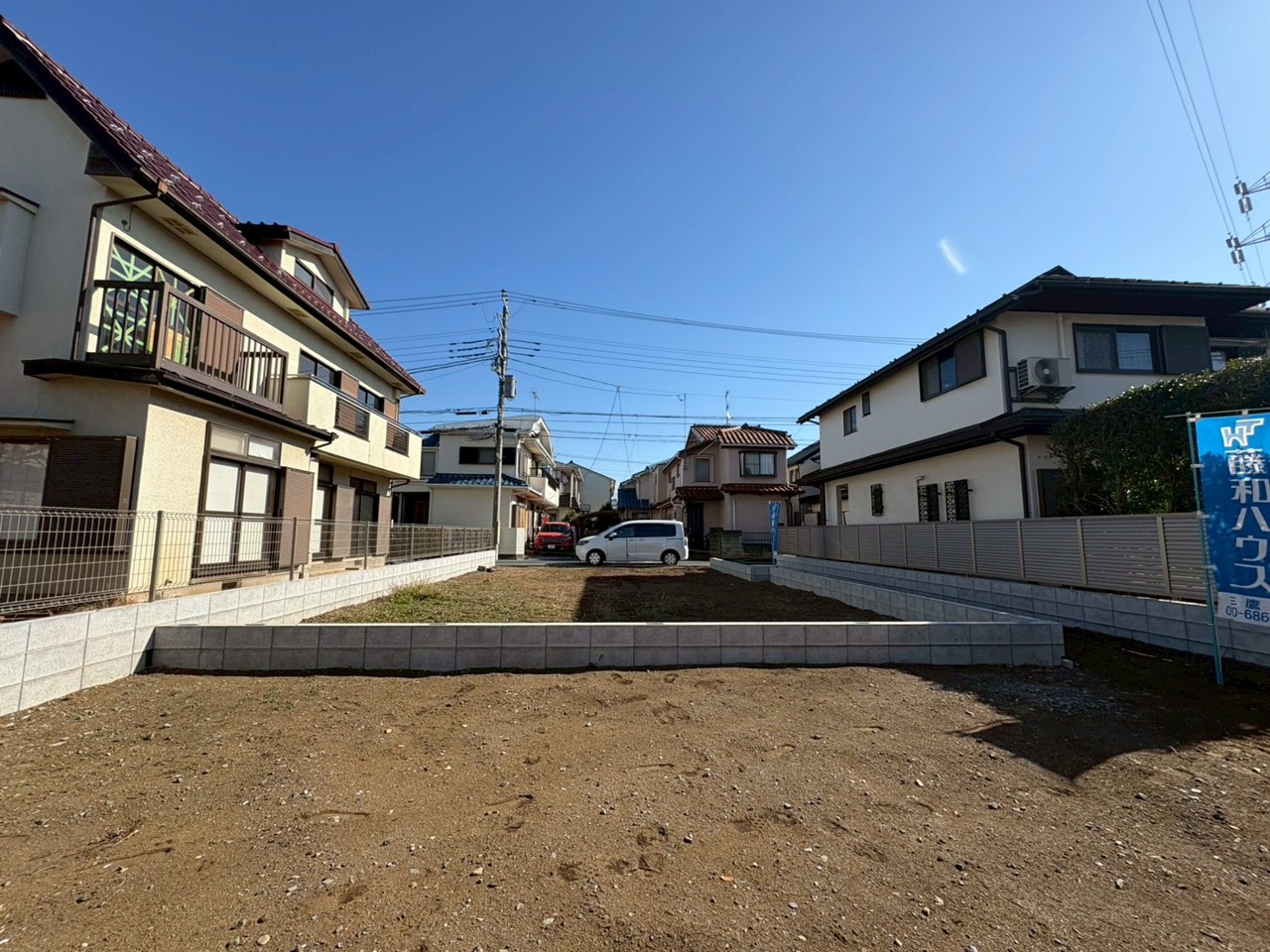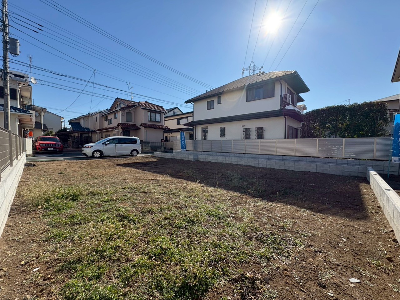 建築条件なしの敷地。弊社グループ「白馬建設」にて建物プランをご提案できます。実際の陽当たりやサイズ感を現地でお確かめください。