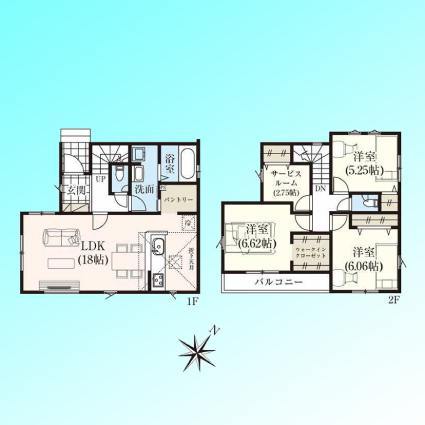 | 間取 | 3SLDK (LDK18帖、洋室6.62帖、洋室6.06帖、洋室5.25帖、S2.75帖) | ||