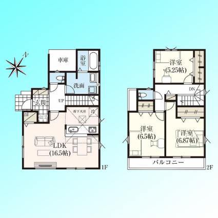 | 間取 | 3LDK (LDK16.5帖、洋室6.87帖、洋室6.5帖、洋室5.25帖) | ||