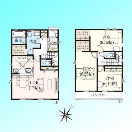 | 間取 | 3LDK~3SLDK (LDK20.62帖、洋室6.12帖、洋室6.75帖、洋室5.25帖) | ||