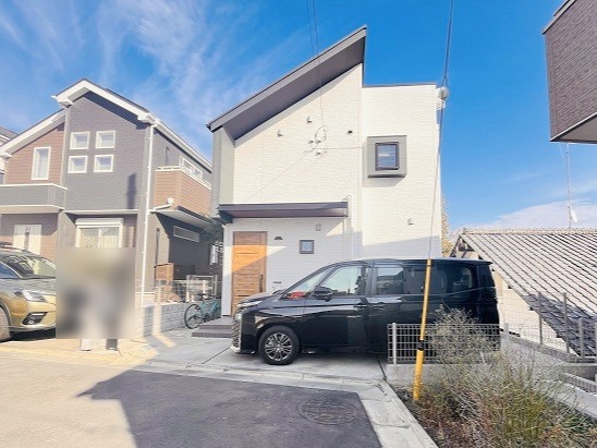 周辺の街並みの中で適度な主張、生活に溶け込むシンプルなデザインの外観が魅力の一戸建です。