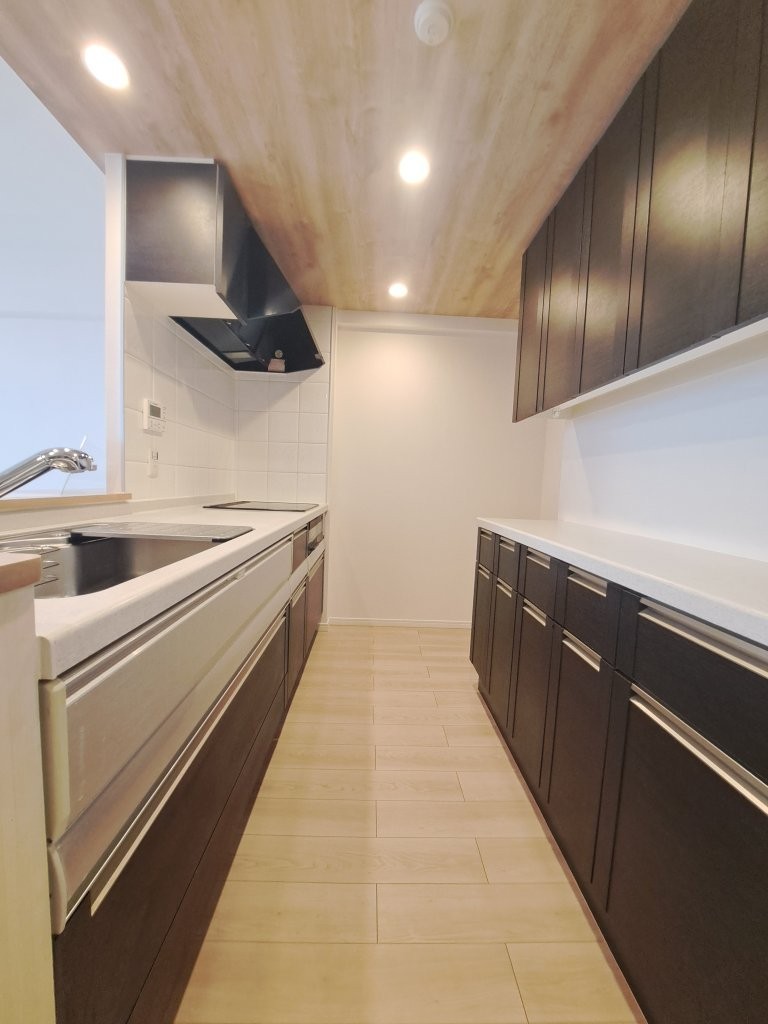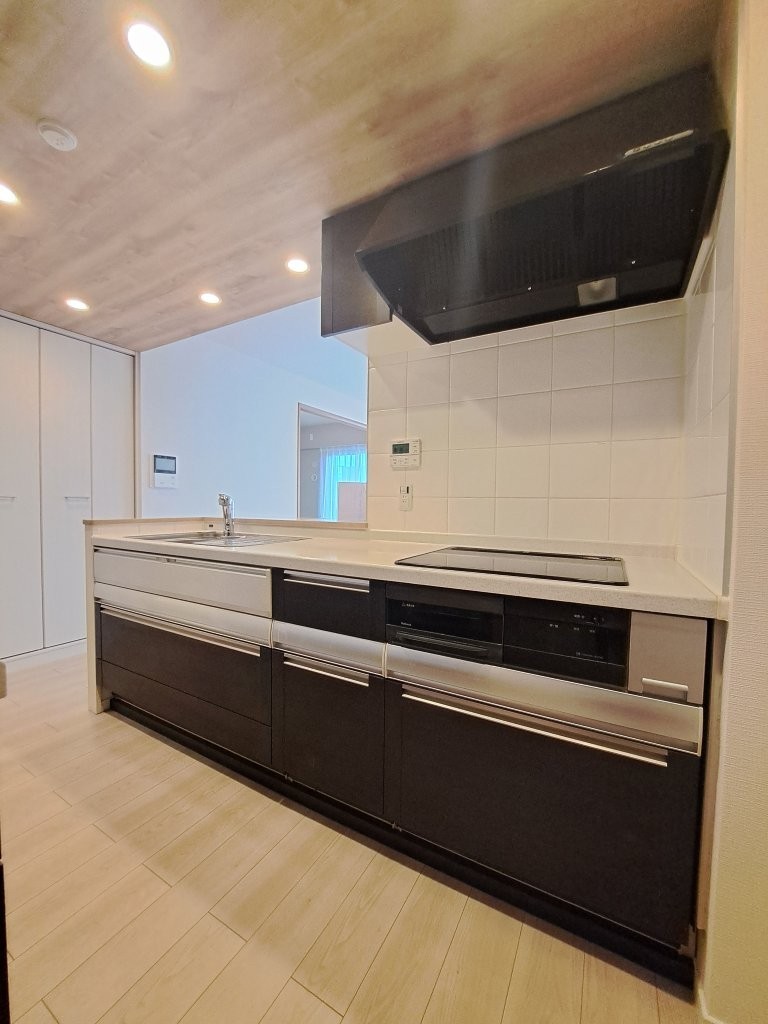 カウンターキッチンは、キッチン側とリビング側に分かれてお店間隔でのお食事も可能!! お休みの日には、いろいろな楽しみ方を家族みんなでお楽しみください