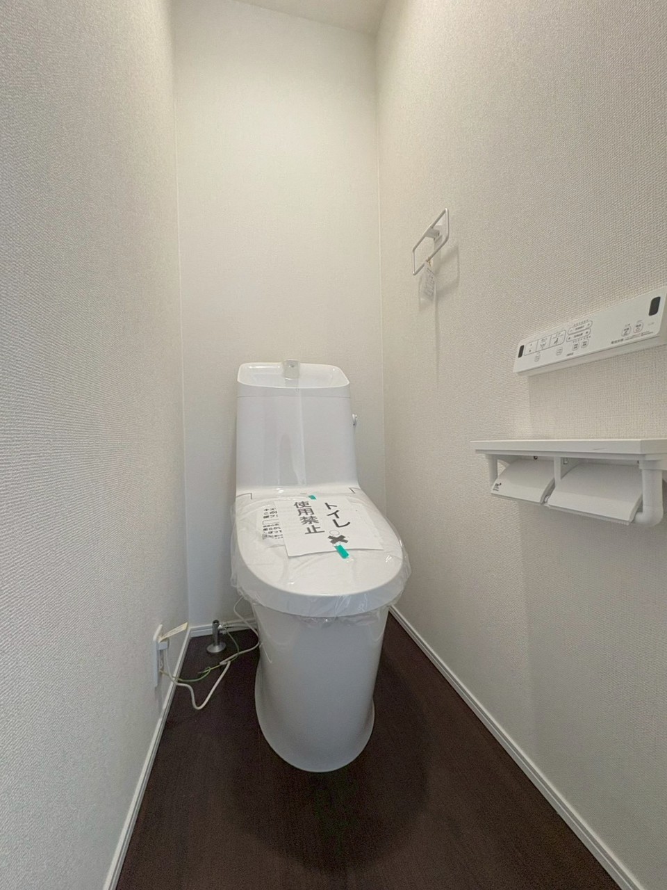 階段下を有効活用したトイレスペース。 便座はもちろんウォシュレット。