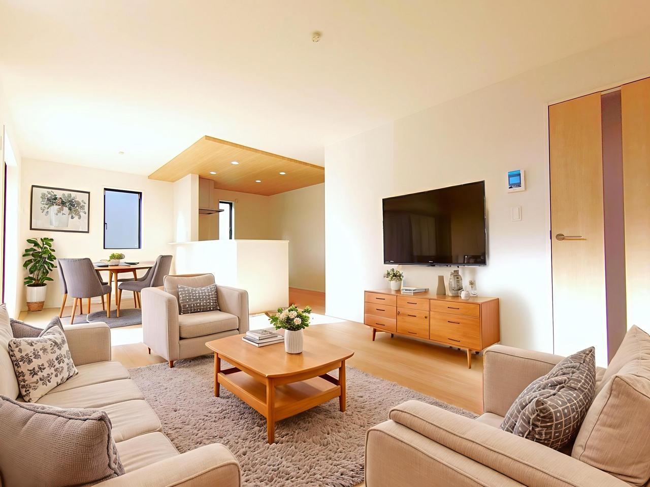 ご家族みんながゆったりくつろげる広々リビング。