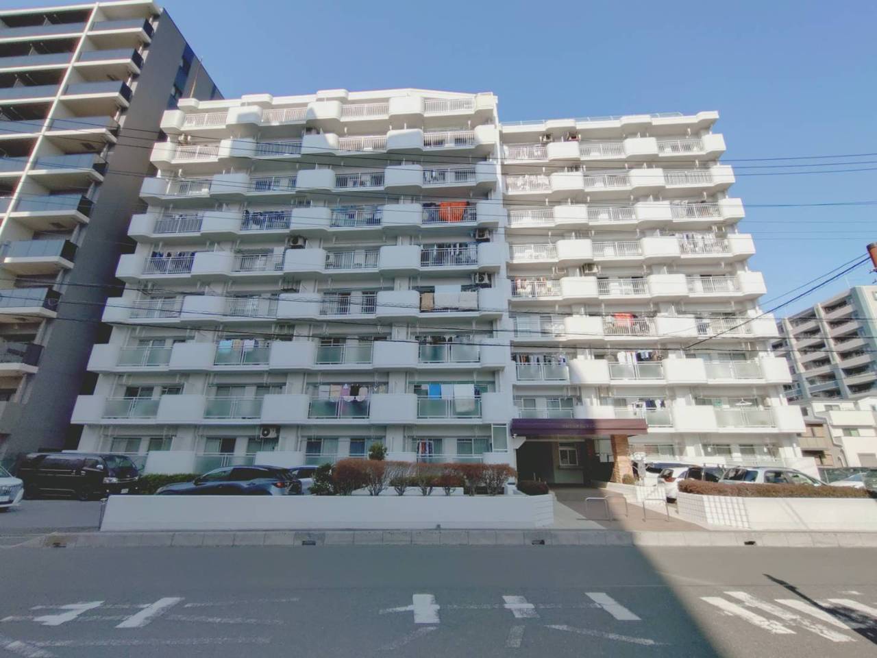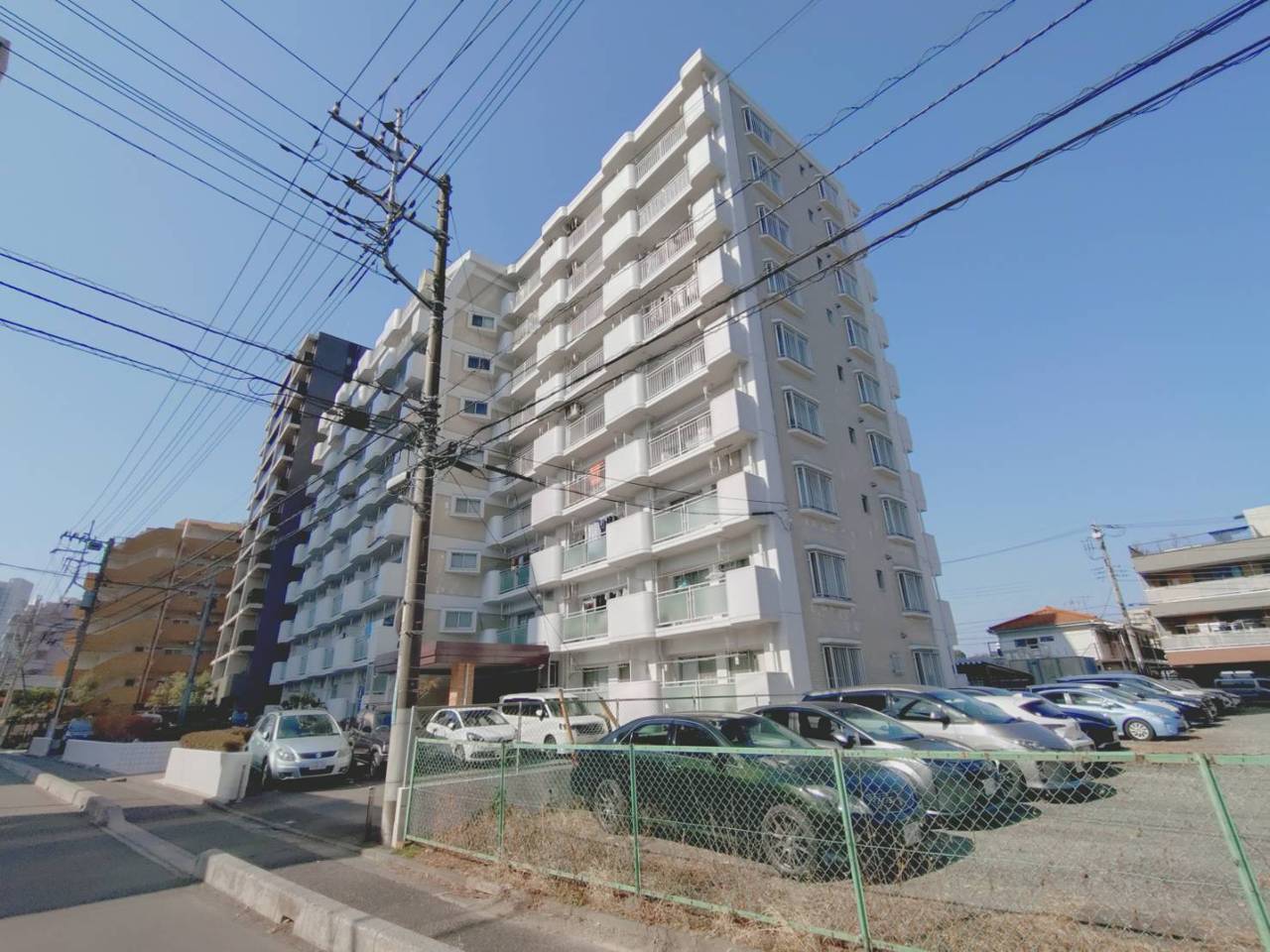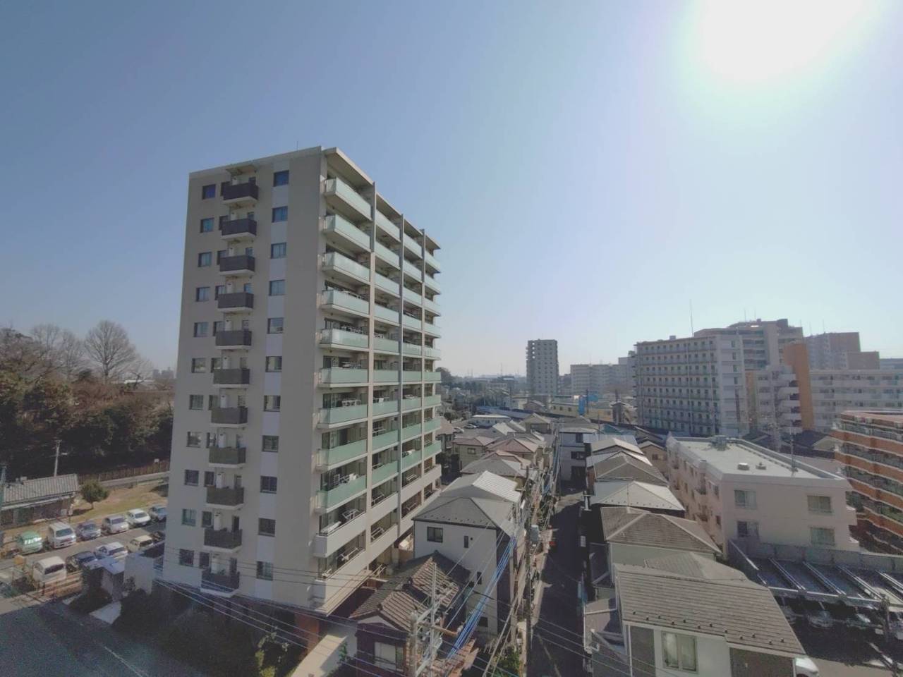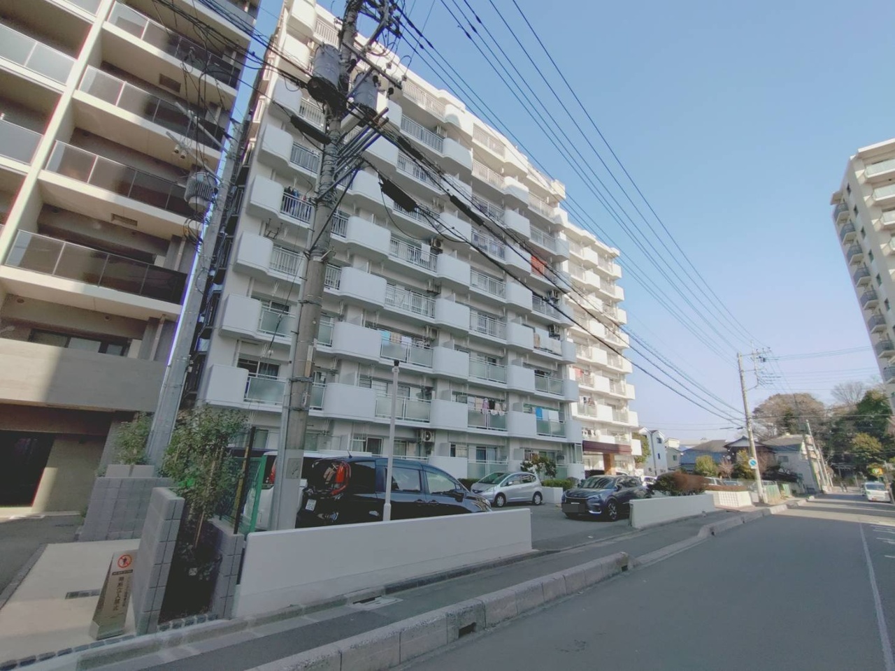 爽やかな空の下、整然と並ぶバルコニーが穏やかな暮らしを思わせます。