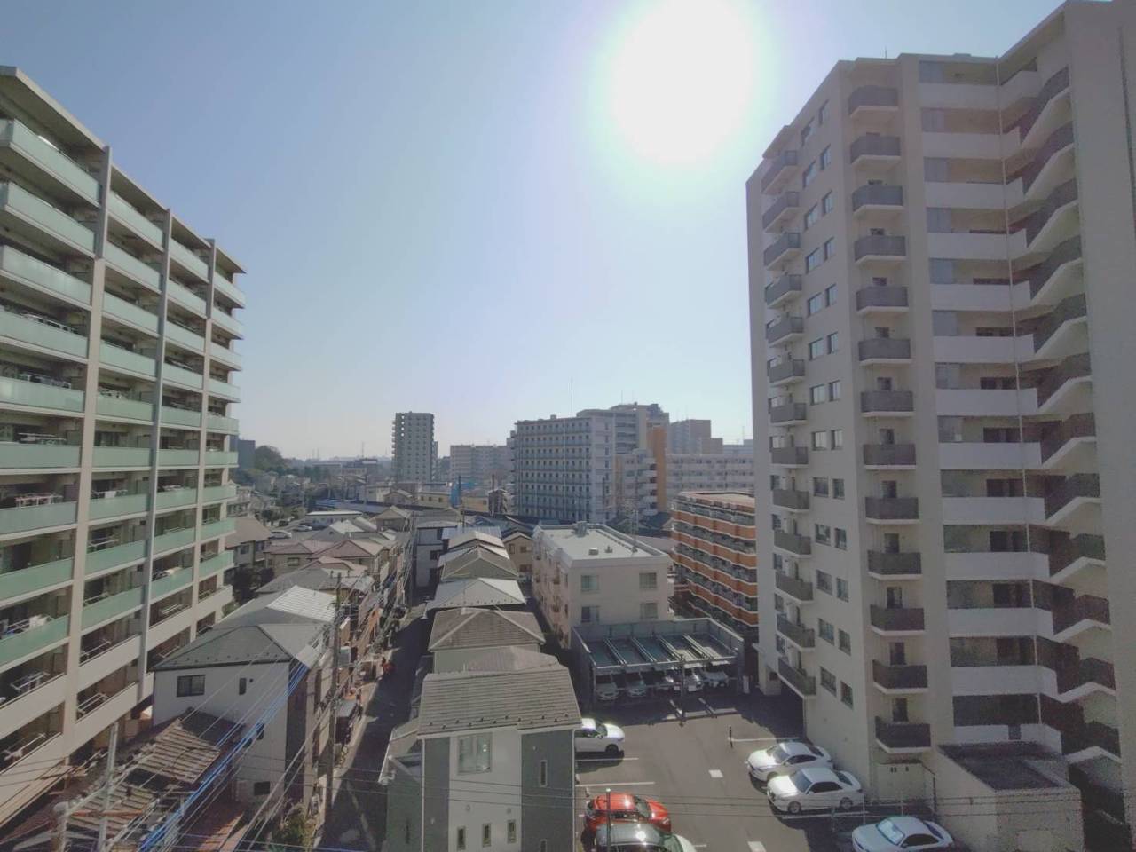 青空の下、穏やかな日差しが街並みを照らしています。