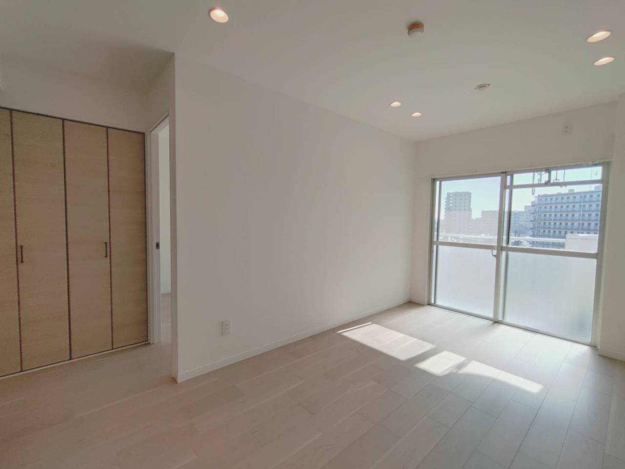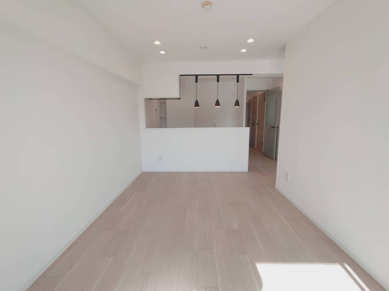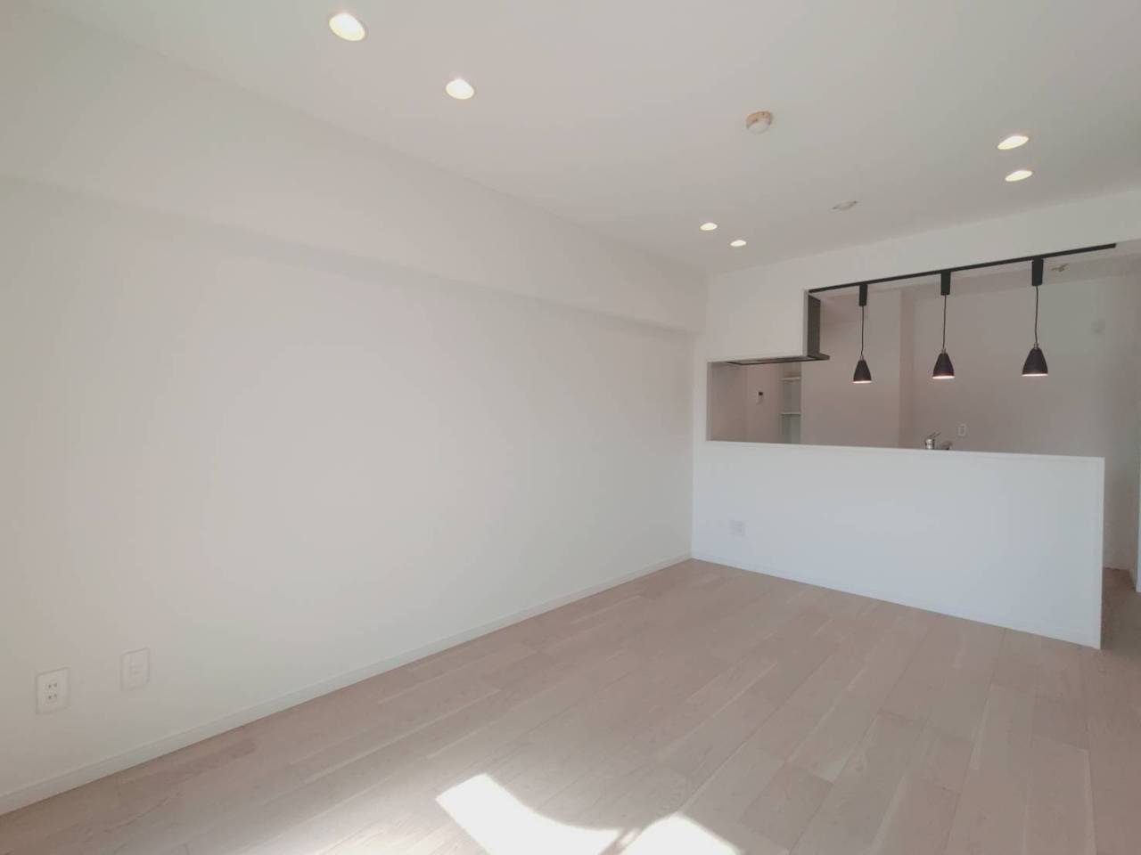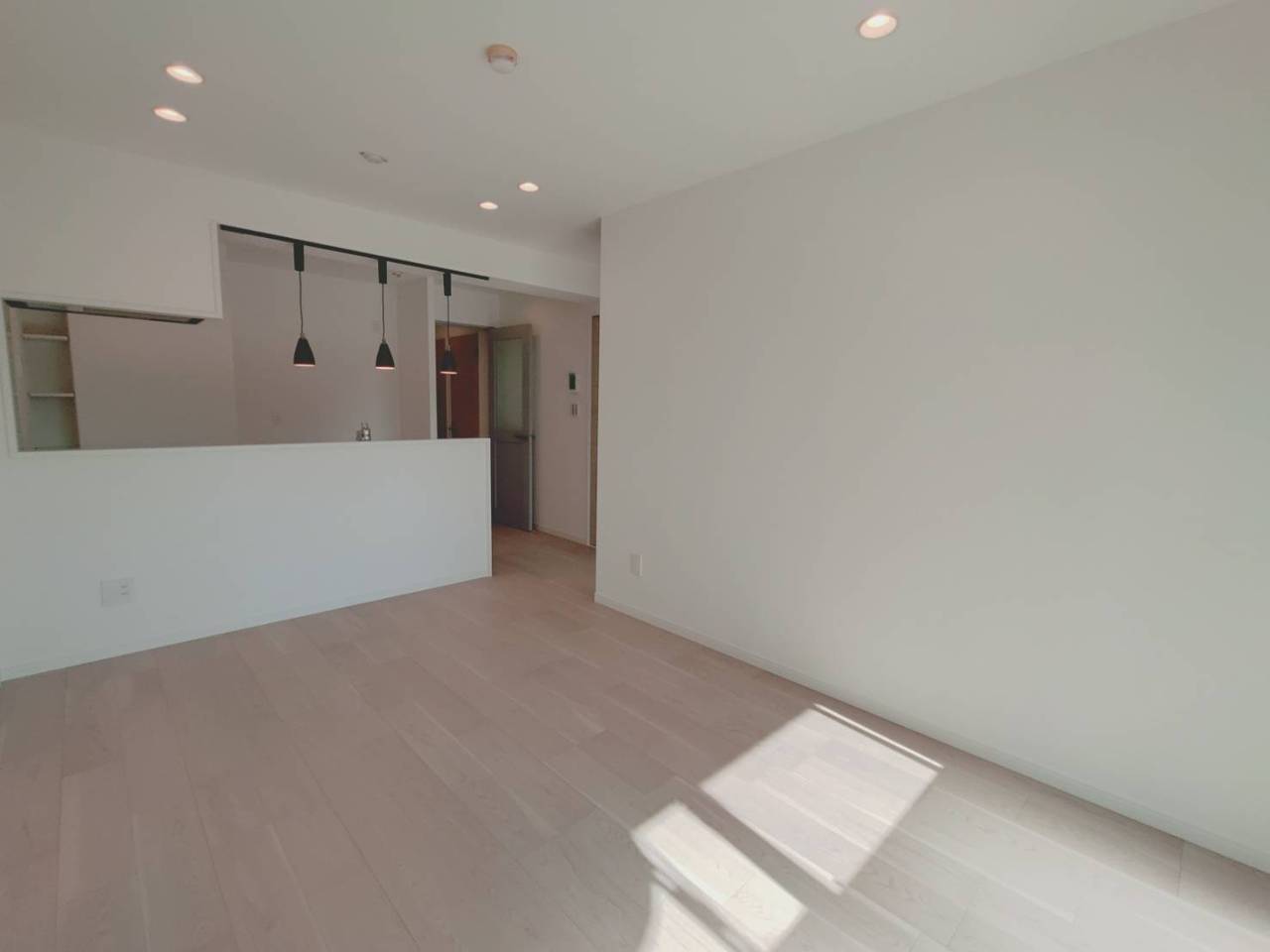 爽やかな木目調の床が、心地よい広がりを感じさせる空間。