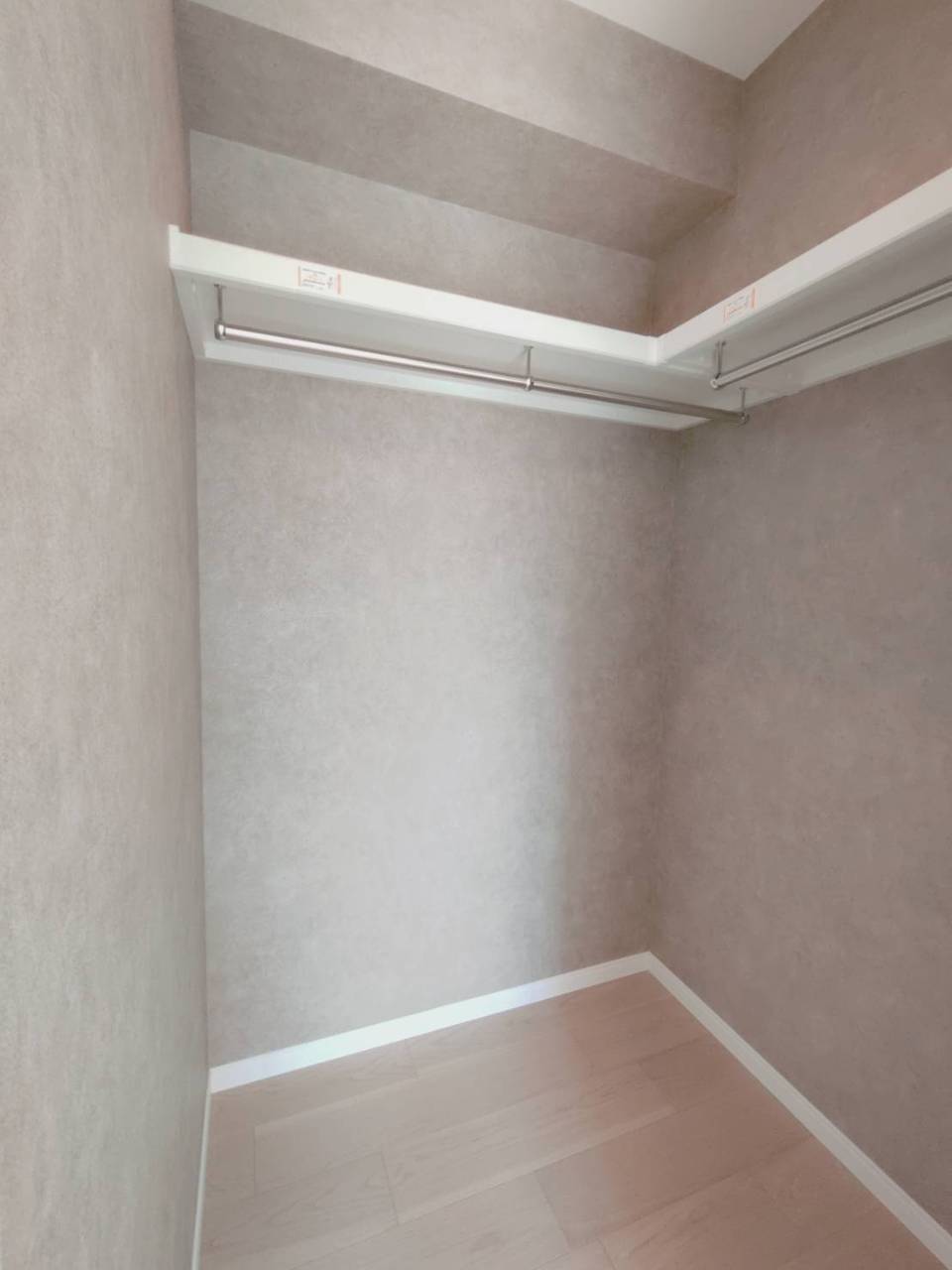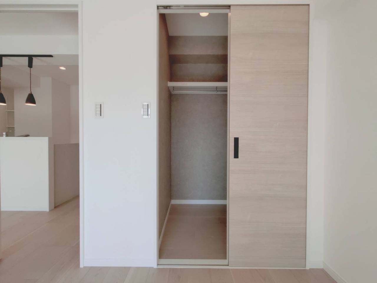 穏やかな空間に、ゆったりと収納できるハンガーパイプのあるスペース