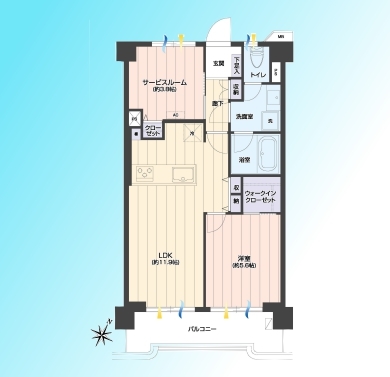 | 間取 | 1SLDK (LDK11.9帖、洋室5.6帖、S3.8帖) | ||
