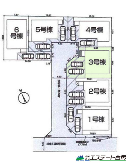 | 備考・制限等 | 開発許可番号7多建開二開第50号、不整形地(6号棟)、別途私道持分17平米の内1/6と4.36平米の内1/6と20平米の内1/6あり、 | ||