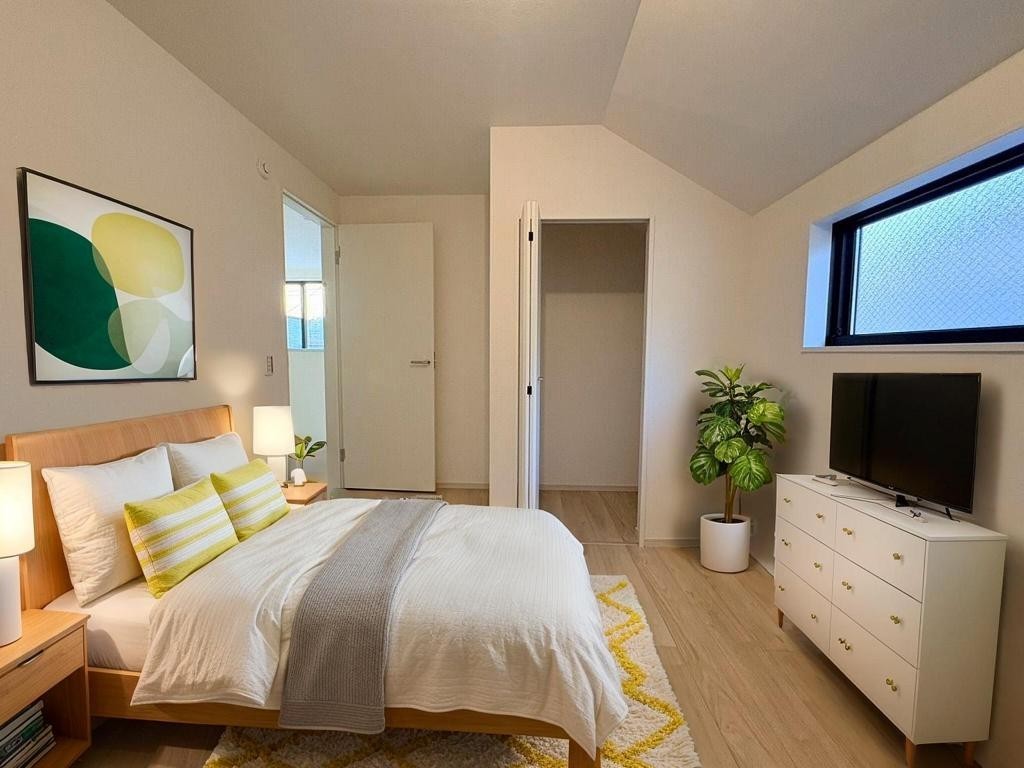 洋室はモダンなデザインと機能性を備え、快適な生活空間に。明るい窓から差し込む自然光が広々とした空間をさらに明るく開放的に感じさせます。