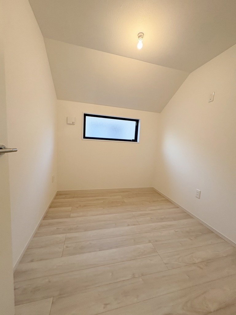 勾配天井の2階のお部屋。この勾配の角度がお洒落な雰囲気を感じさせてくれます。