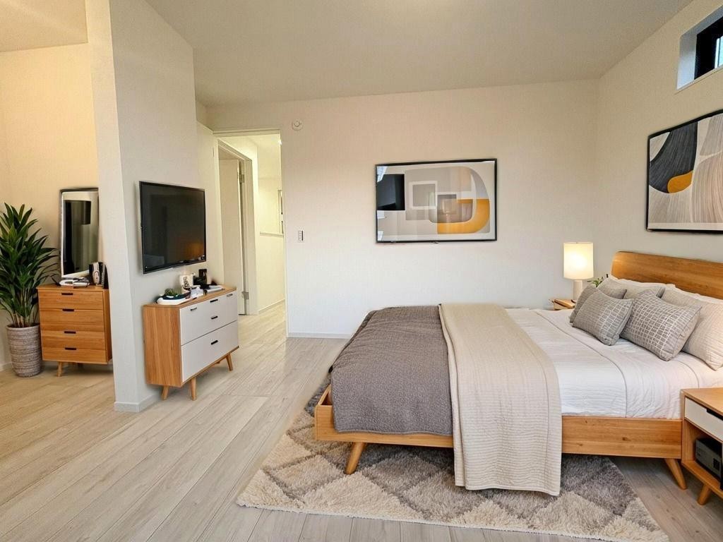 洋室はモダンなデザインと機能性を備え、快適な生活空間に。明るい窓から差し込む自然光が広々とした空間をさらに明るく開放的に感じさせます。