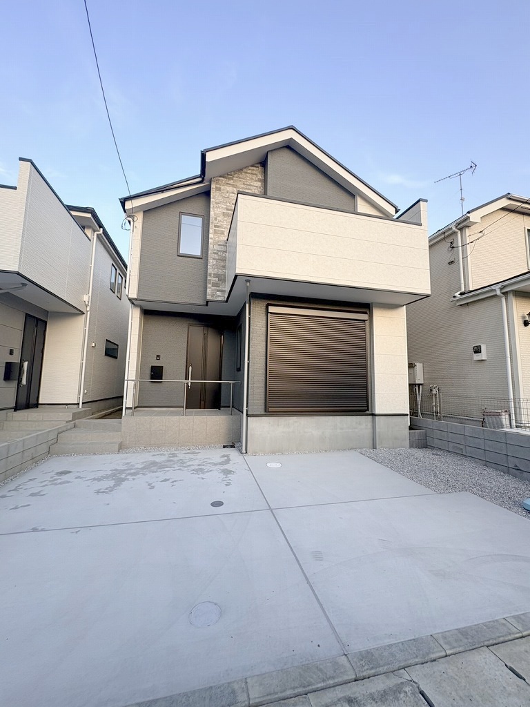 周辺の街並みの中で適度な主張、生活に溶け込むシンプルなデザインの外観が魅力の一戸建です。