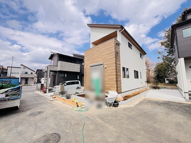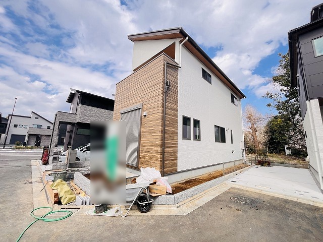 西側道路。固定階段付き小屋裏収納。土間収納、WIC2カ所付。浴室暖房乾燥機。食洗機。浄水器。ペアガラス。EV充電設備。コンビニ徒歩約5分