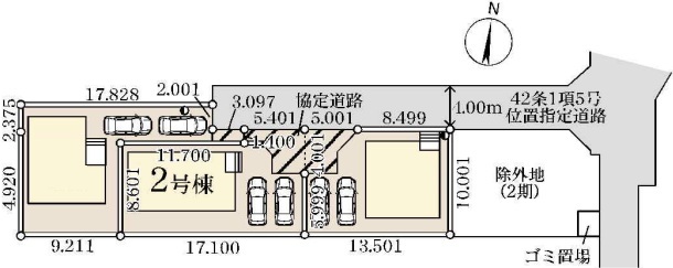 | 備考・制限等 | ※協定道路は地役権の設定を致します。 ゴミ置場持分5.26平米×1/4 |