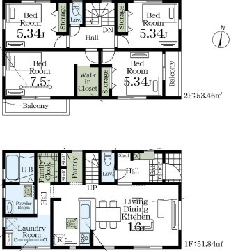 | 間取 | 4LDK (LDK16帖、洋室7.5帖、洋室5.34帖、洋室5.34帖、洋室5.34帖) | ||