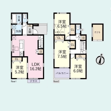 | 間取 | 4LDK+ロフト (LDK16.2帖、洋室5.2帖、洋室6.5帖、洋室7.5帖、洋室6帖) | ||