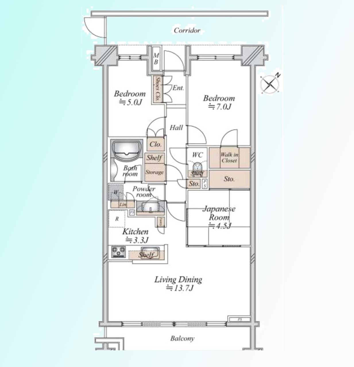| バルコニー面積 | 13.06m² 南東向き | ||