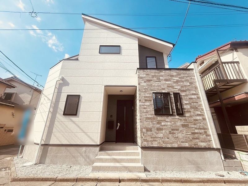 周辺の街並みの中で適度な主張、生活に溶け込むシンプルなデザインの外観が魅力の一戸建です。