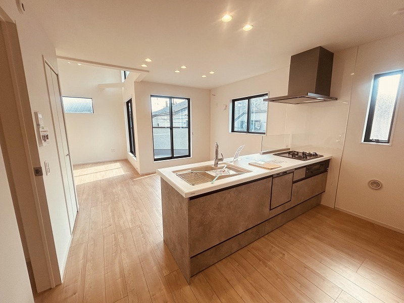 カウンターキッチンならではの開放的な見通し、全体が見渡せることでご家族の団欒スペースもより明るく笑顔が溢れる空間となります。