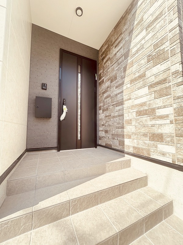 玄関は家の第一印象を左右する重要な場所。ほどよい広さとスタイリッシュな色遣いが印象的です。