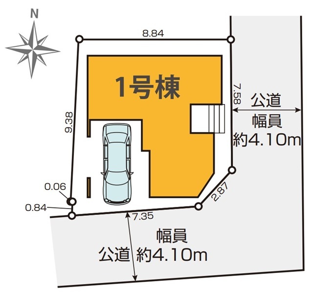 | 接道 | 南側4.1M公道に7.35M接道 東側4.1M公道に7.58M接道 |