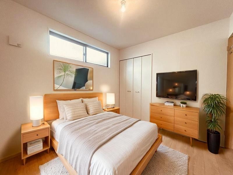 洋室はモダンなデザインと機能性を備え、快適な生活空間に。明るい窓から差し込む自然光が広々とした空間をさらに明るく開放的に感じさせます。