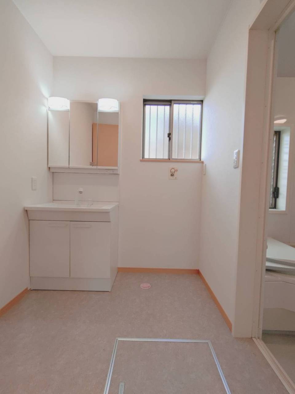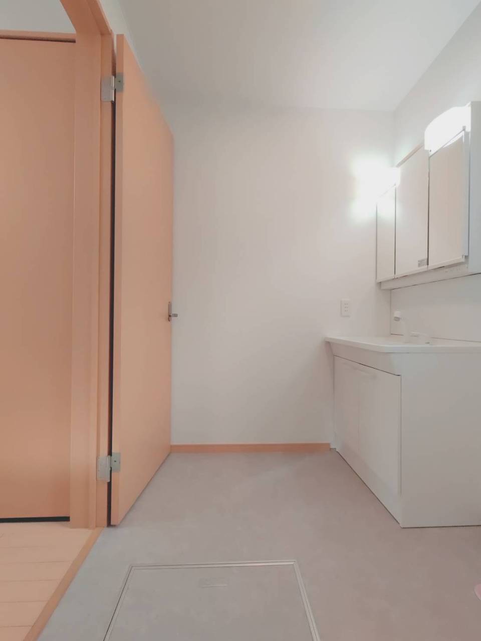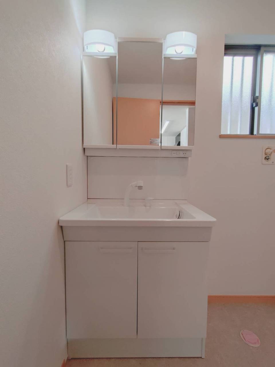 洗面化粧台は清潔感の漂うホワイトをベースカラーに、シンプルなデザインで。