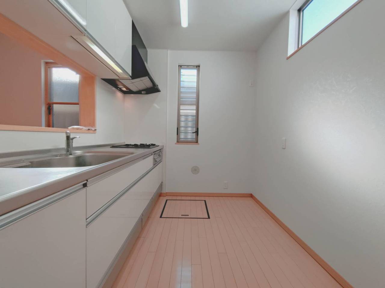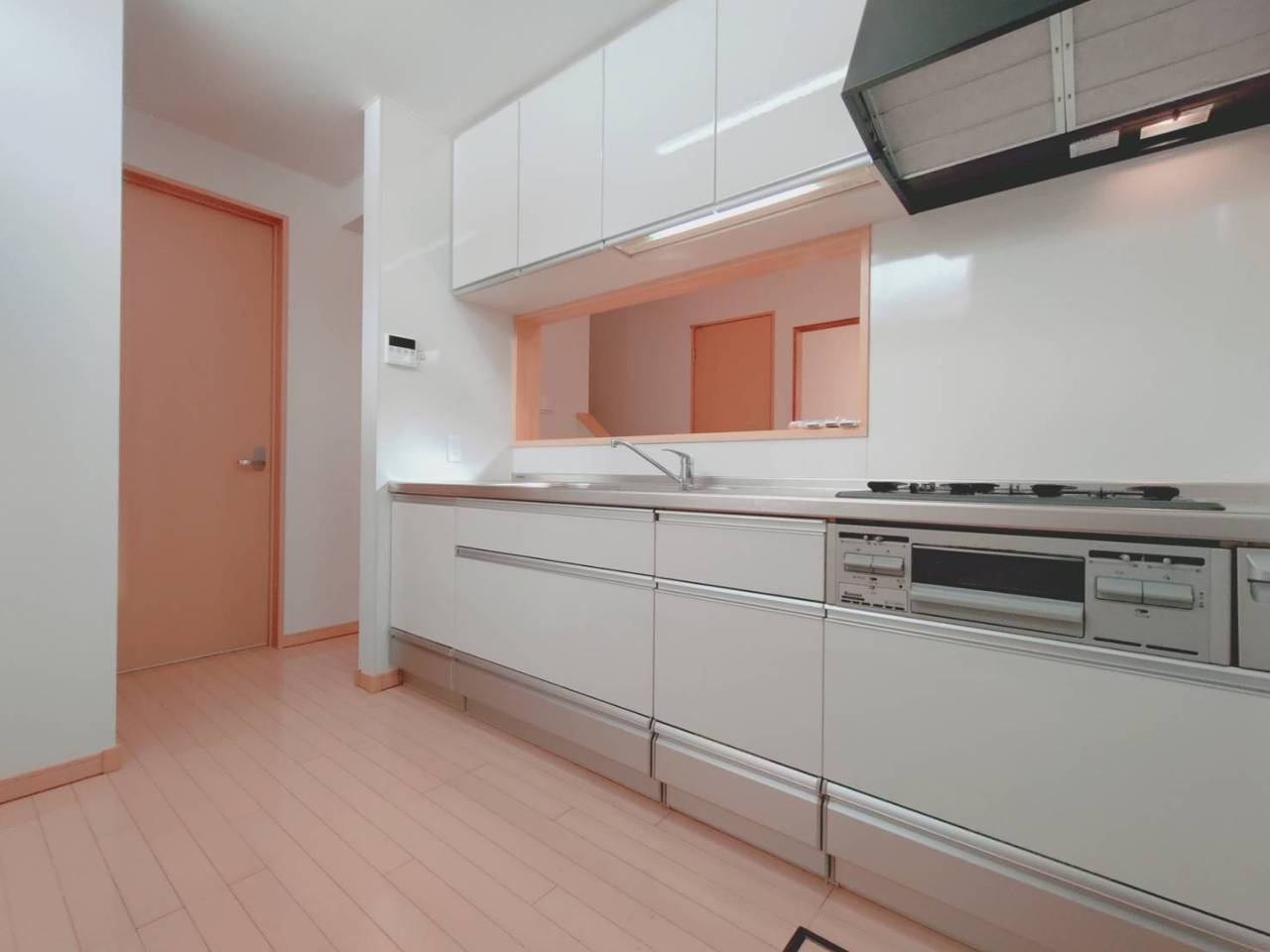 手を伸ばせばそこに収納が。安定した使用感の吊戸棚つきのキッチン空間。