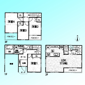 | 間取 | 4LDK (LDK17.6帖、洋室4.5帖、洋室5帖、洋室5.2帖、洋室6.8帖) | ||