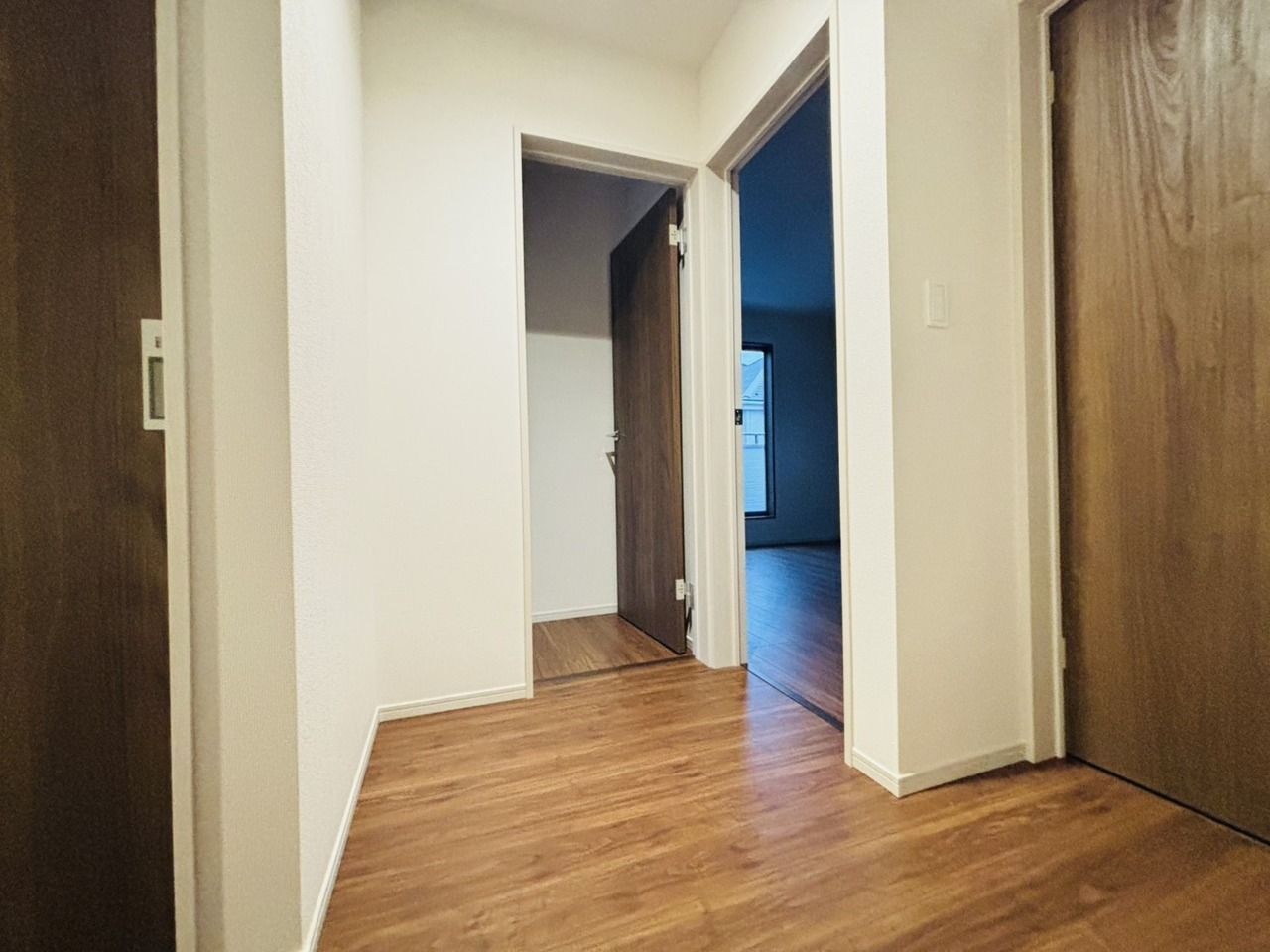 誰も住んだことのない家の玄関スペース。あたらしい木のにおいを感じていただけると思います。