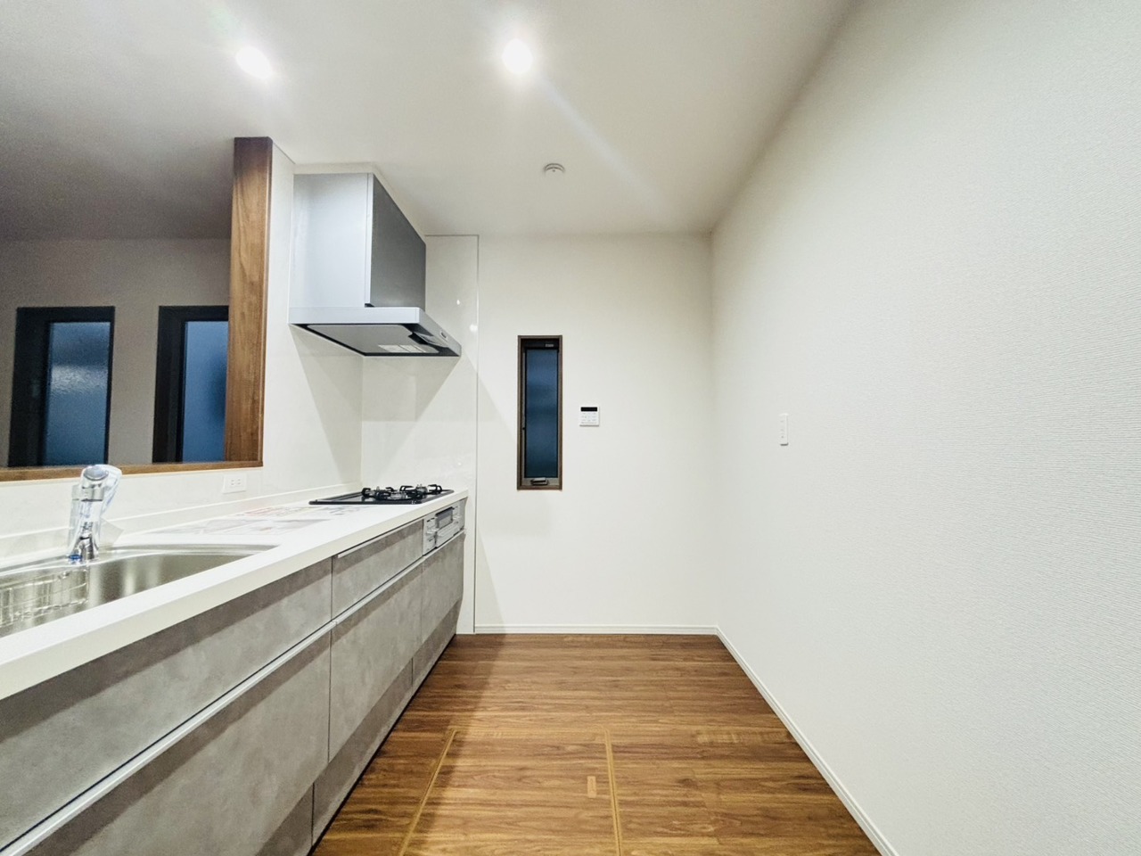キッチン裏の空間もしっかり確保。カップボードも大きなものを置けそうです。