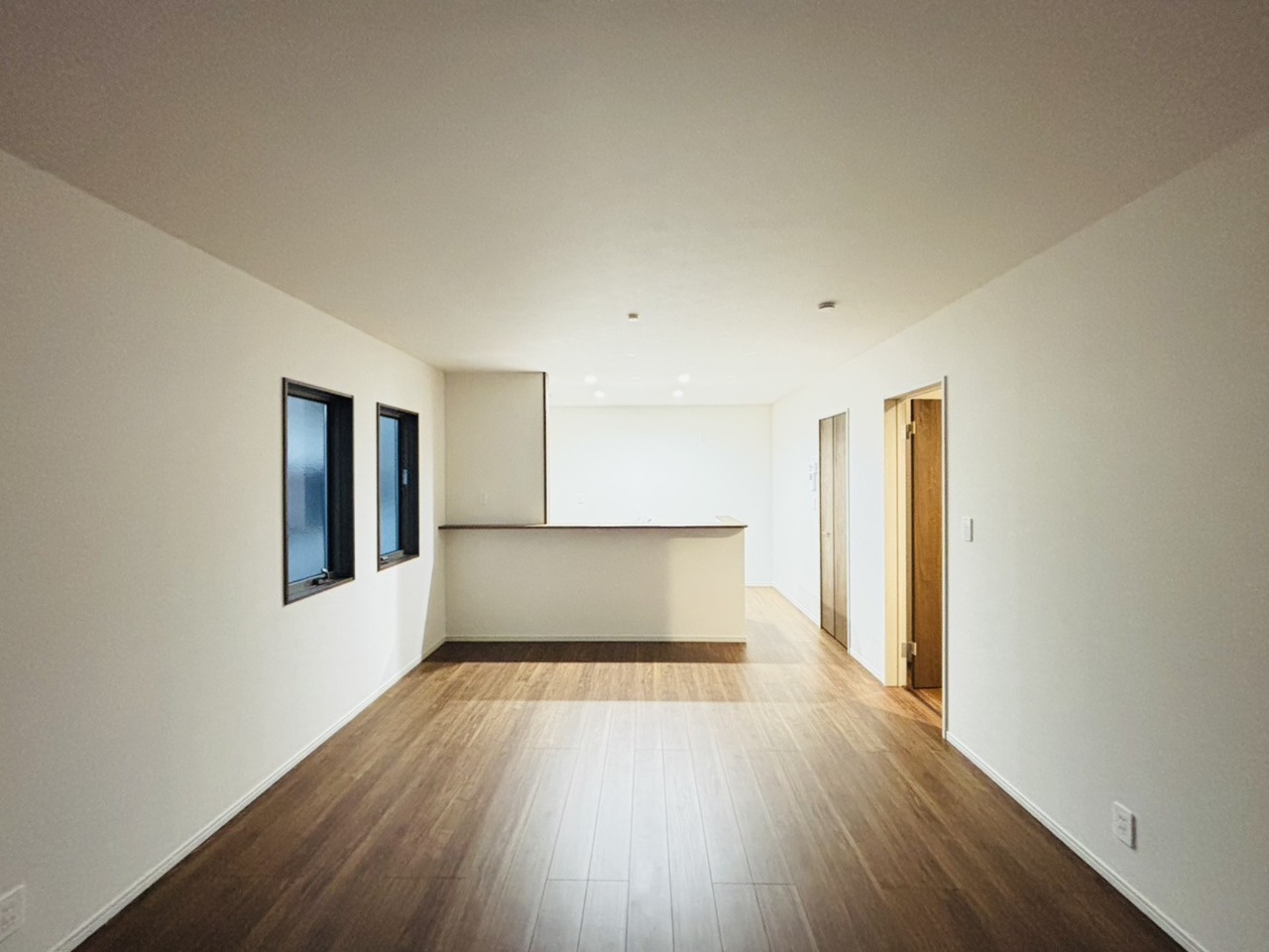 新築の木の匂いのする室内。写真では伝わらないので、ぜひ現地でお確かめください。