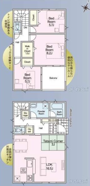 | 建物面積 | 93.54m² ~ 98.82m² 実測 | ||