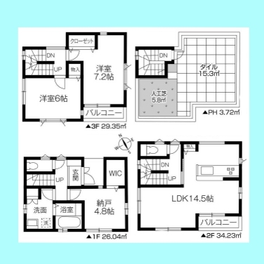 | 間取 | 2SLDK (LDK14.5帖、洋室7.2帖、洋室6帖、S4.8帖) | ||