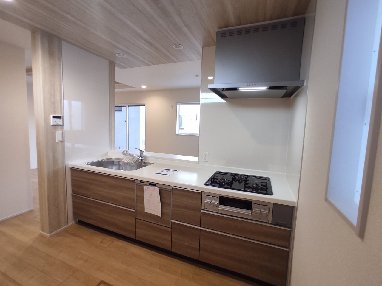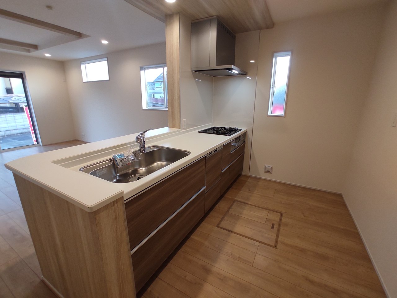 3号棟 対面タイプなら、キッチン内にいながらご家族やお客様との会話が楽しめます。 2026/04/12m