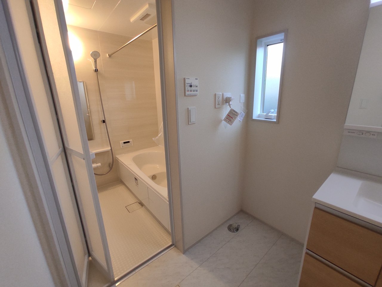 1号棟 広々1坪タイプのゆったり浴室ユニット。防カビ・抗菌素材なのもうれしい。 2026/04/12m