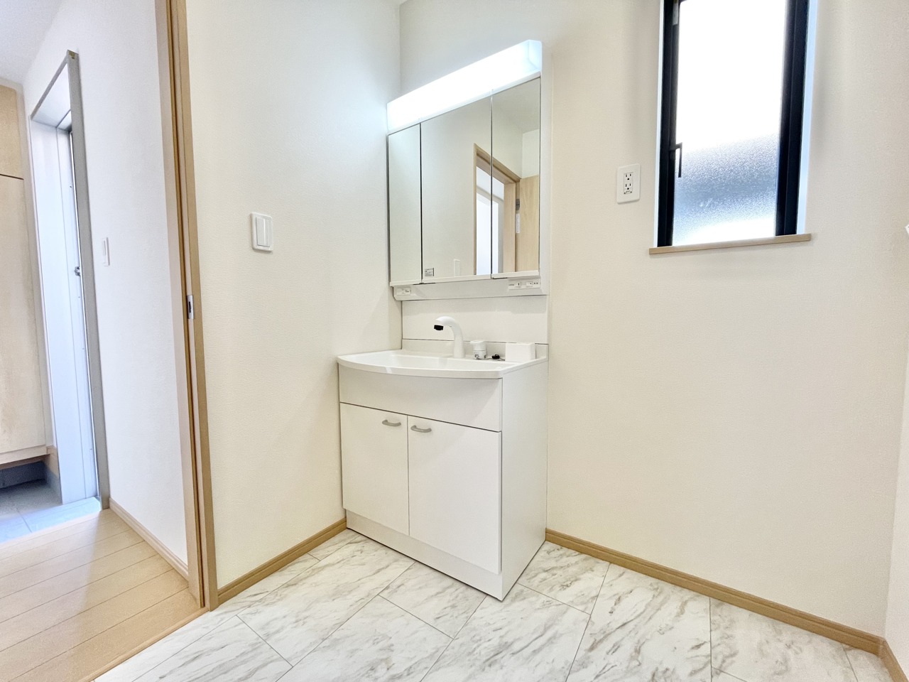 清潔感あふれる空間に、柔らかな光が心地よく広がります。