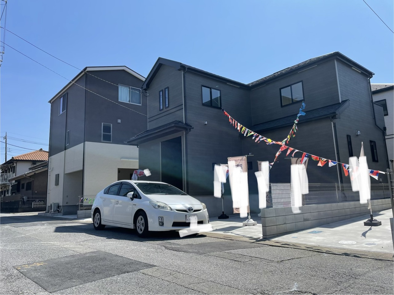 青空の下、モダンな佇まいが心地よい暮らしを彩ります。
