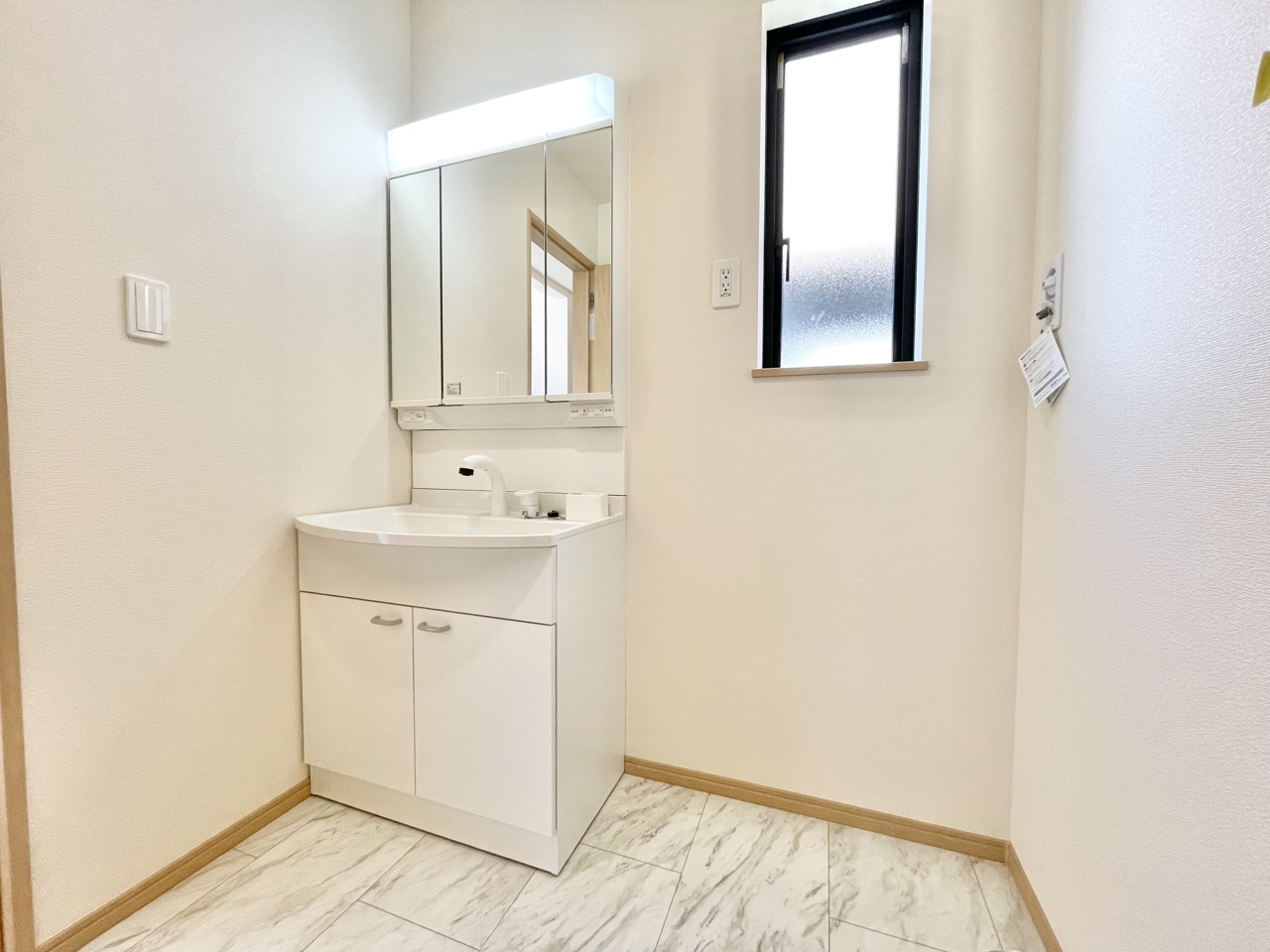 心地よい広がりを感じさせる、清潔感あふれる洗面空間