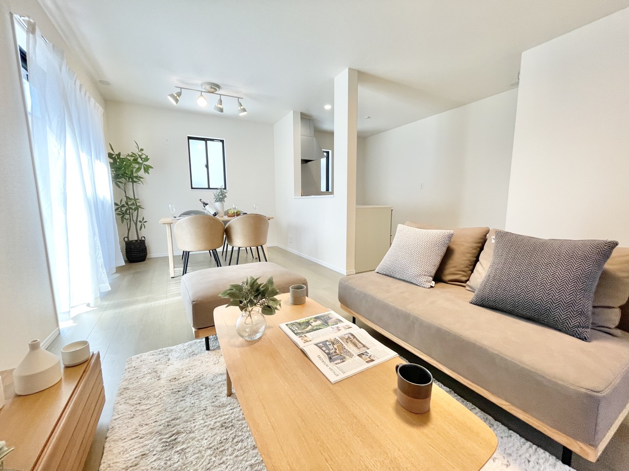 窓から柔らかな光が差し込み、心地よい空間が広がります