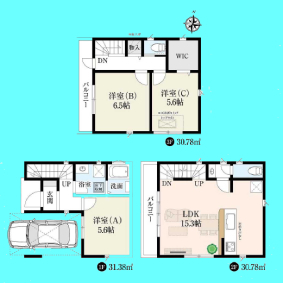 | 間取 | 3LDK (LDK15.3帖、洋室6.5帖、洋室5.6帖、洋室5.6帖) | ||