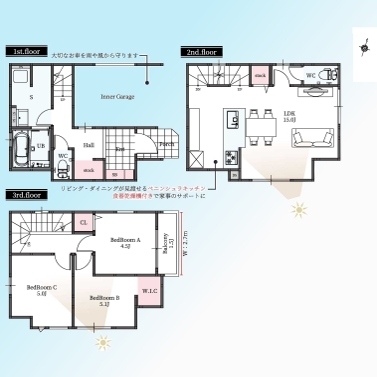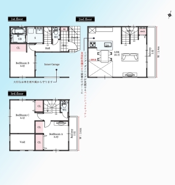 | 間取 | 3LDK~3LDK (洋室6帖、LDK18.7帖、洋室6.5帖、洋室6帖) | ||