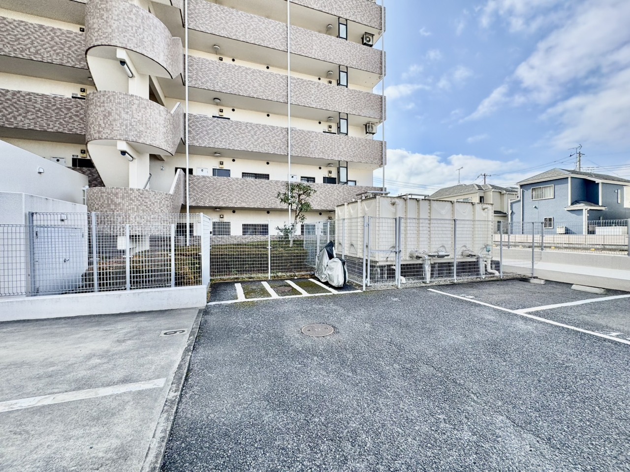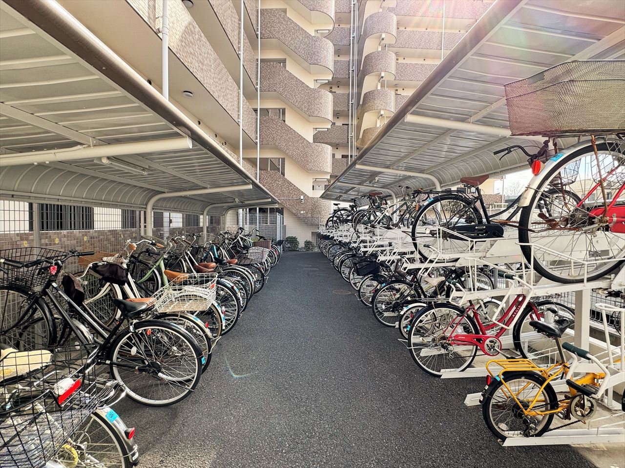 マンション敷地内の屋根付き駐輪スペース